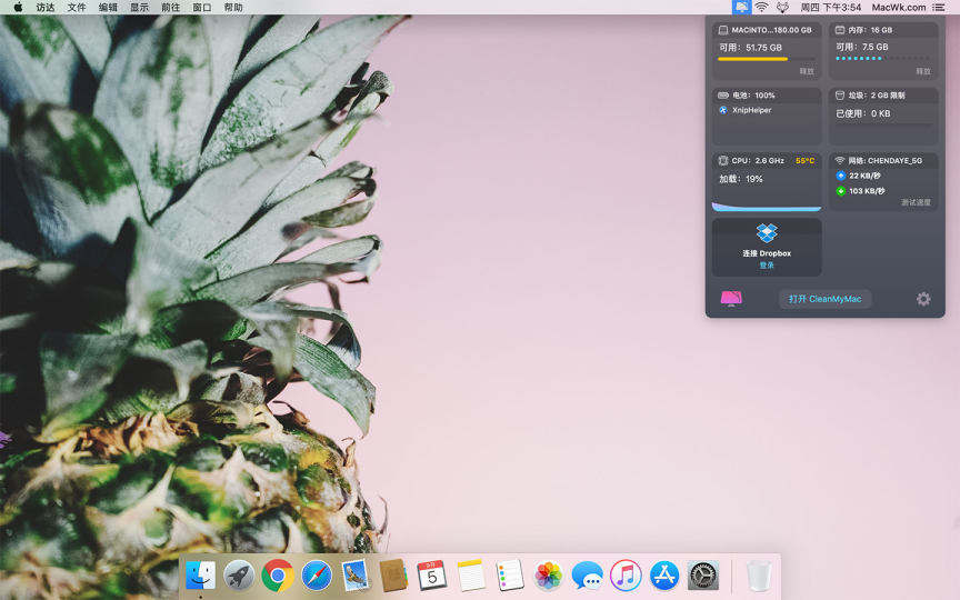 监控 Dropbox 的空间使用状态,内存增加了内存释放功能,可以进行测速,可以列出消耗电量比较大的应用,而且可以直接在里面关闭应用,可以查看CPU的使用率等